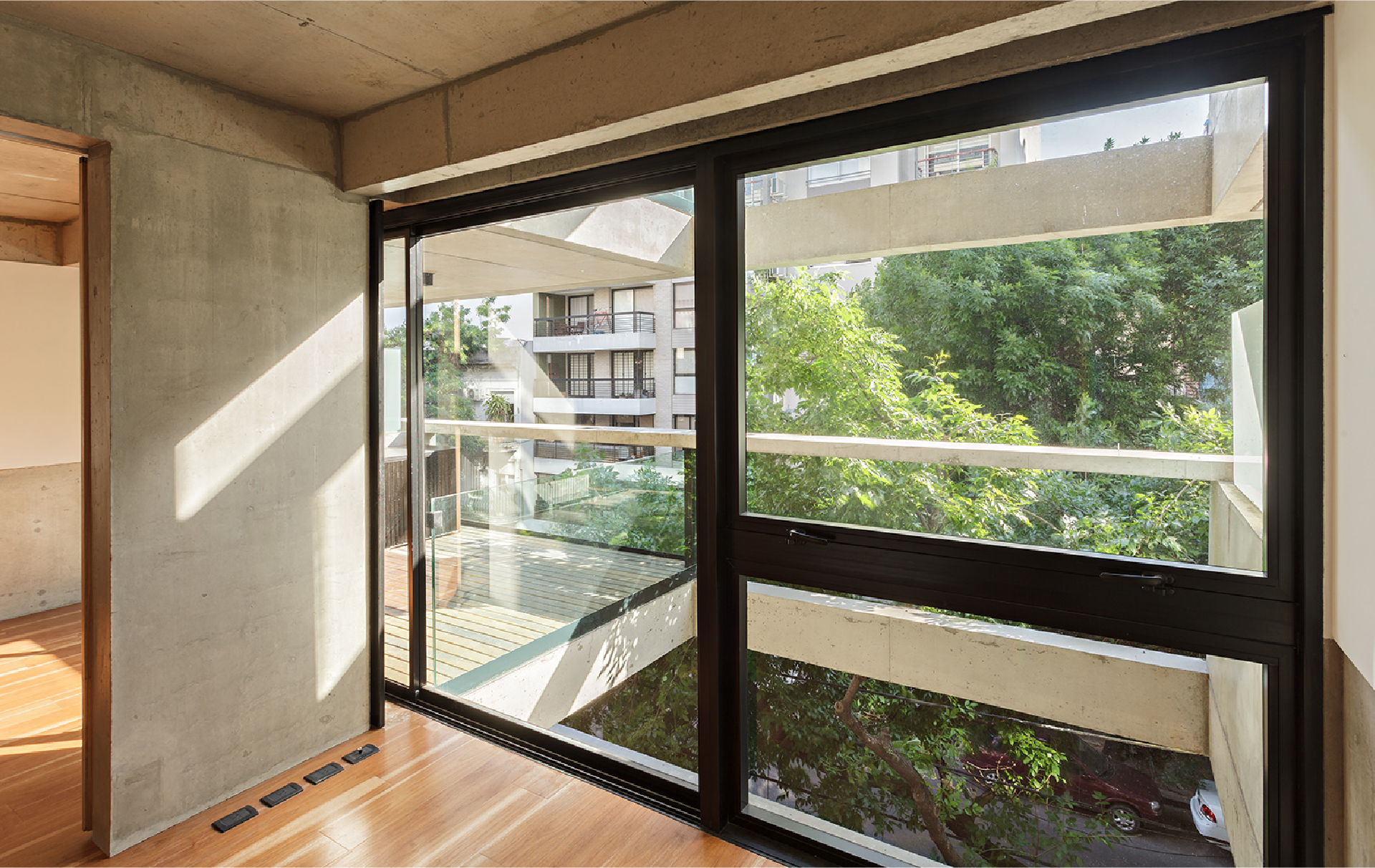 Cada elemento que compone este edificio se hace expresivo y denota su relación tectónica en cuanto a las partes y a la totalidad de la obra. La estructura de hormigón permite desarrollar expansiones de medidas poco convencionales que se alternan con vacíos y dobles alturas, buscando retomar el espíritu de una casa desde su relación con los espacios exteriores.